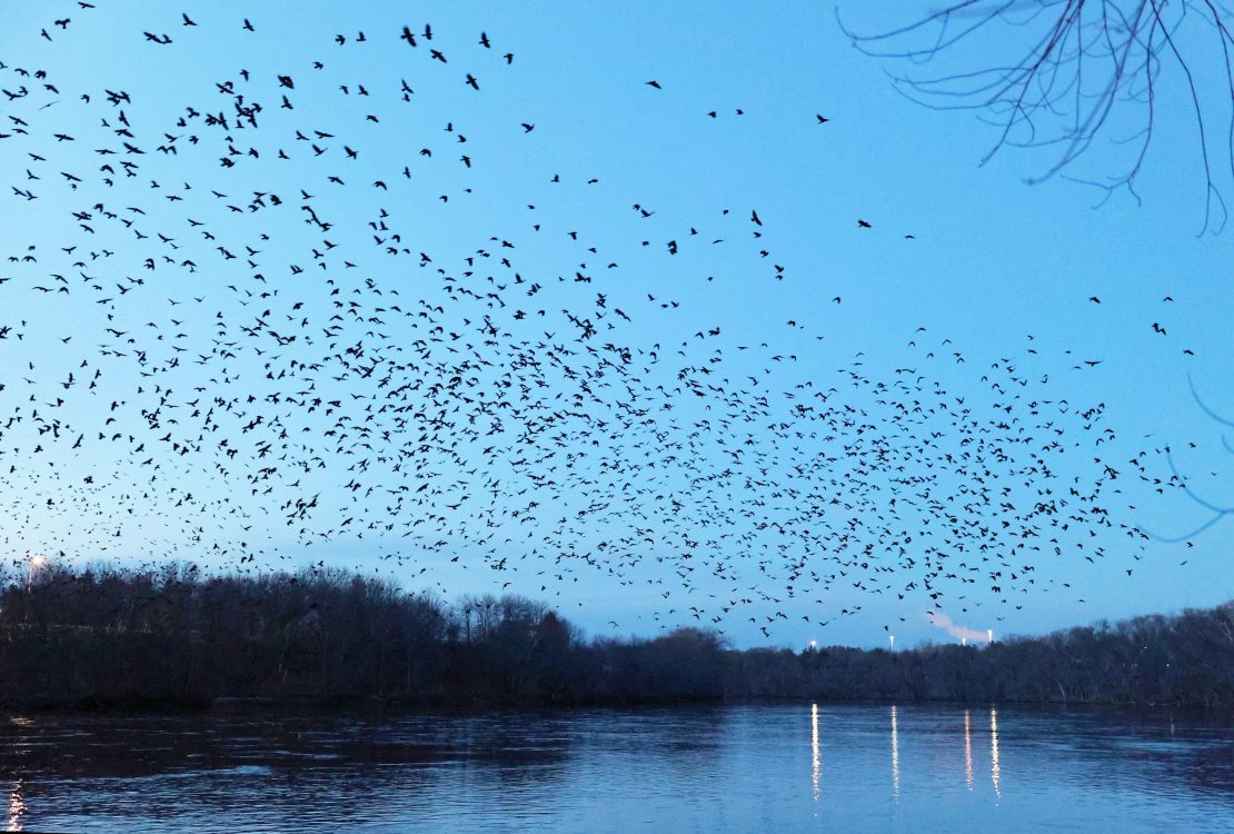 Winter Crow Roost: massive flight streams!