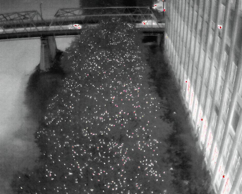 Winter Crow Roost: staging along Merrimack Street