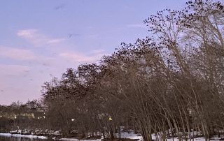 March 10, 2026 under clear skies, wind SW at 8MPH, temp 71F; sunset time 6:45PM Out on Crow Patrol along the south side of the Merrimack River just downriver from the Route 495 bridge, arriving shortly before sunset. At first the area was unexpectedly calm. Small groups of crows passed overhead at higher altitude, suggesting they were still [...]