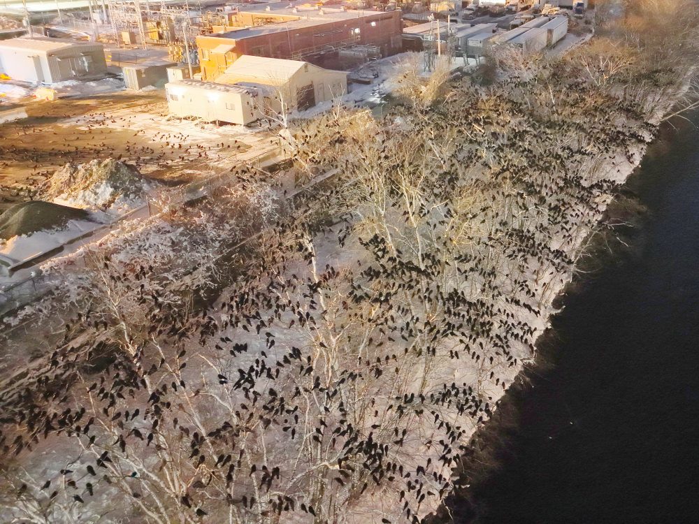 Monday night brought a terrific turnout of members from the Merrimack Valley Bird Club, gathered under the outstanding leadership of Donna Cooper for another unforgettable evening at the Lawrence winter crow roost. With clear views, active birds, and the added perspective of aerial imagery, the evening offered both spectacle and insight into how this large communal roost takes shape after sunset.