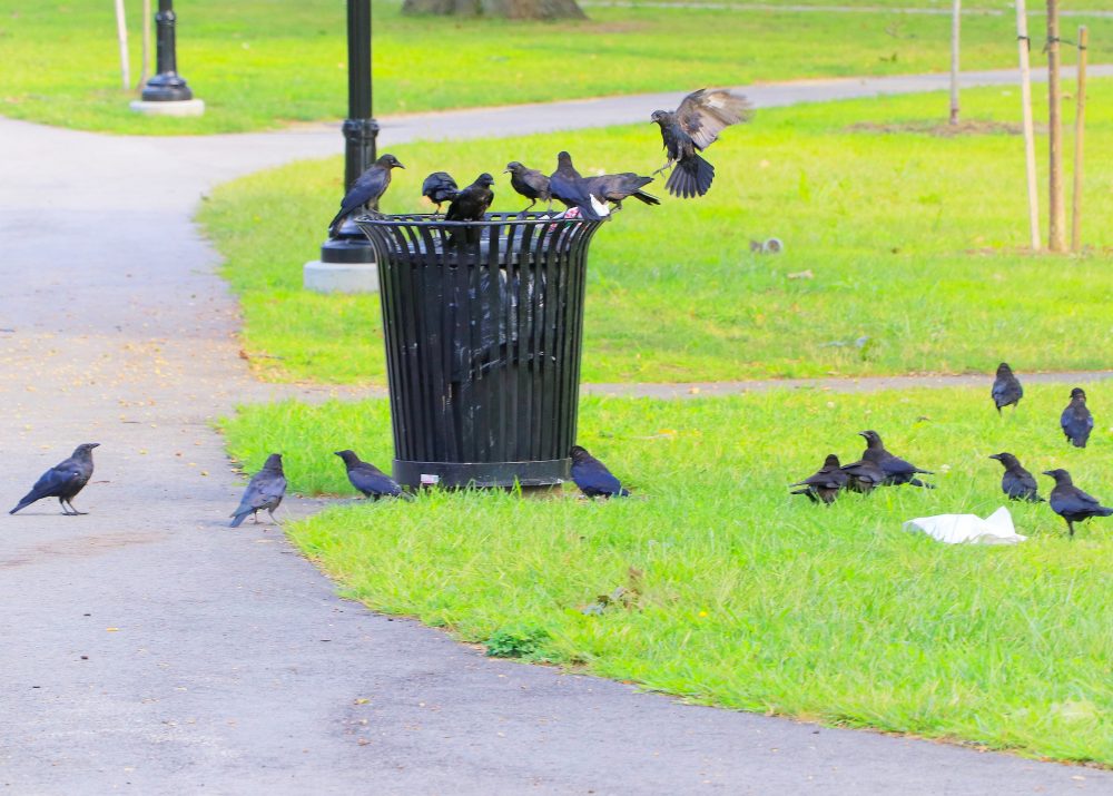 Crows are highly opportunistic foragers, adept at exploiting a variety of food sources. In rural areas, they glean fields for leftover crops like corn, soybeans, or other grains, often following machinery during harvest seasons. In suburban and urban settings, they scavenge dumpsters, parks, and roadsides, capitalizing on human waste (Cornell Lab of Ornithology). Their ability to crack nuts, extract insects from leaf litter, and even cache food for later use highlights their ingenuity. In natural settings, crows feed on berries, seeds, invertebrates, and the occasional small mammal, showcasing their versatility in food preferences (Verbeek & Caffrey, 2002).
