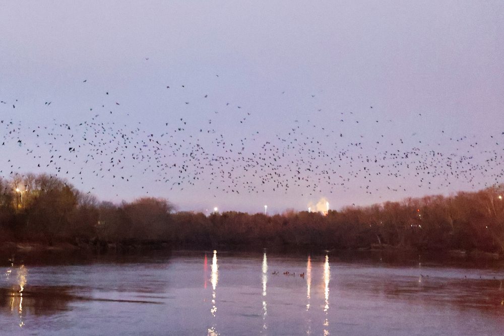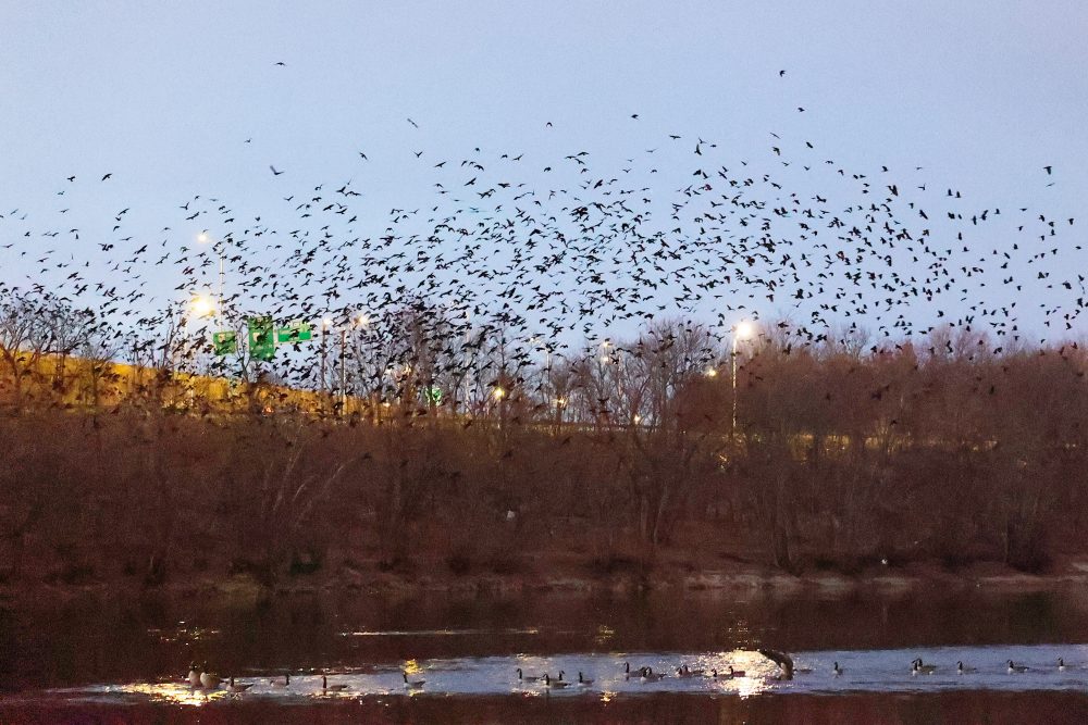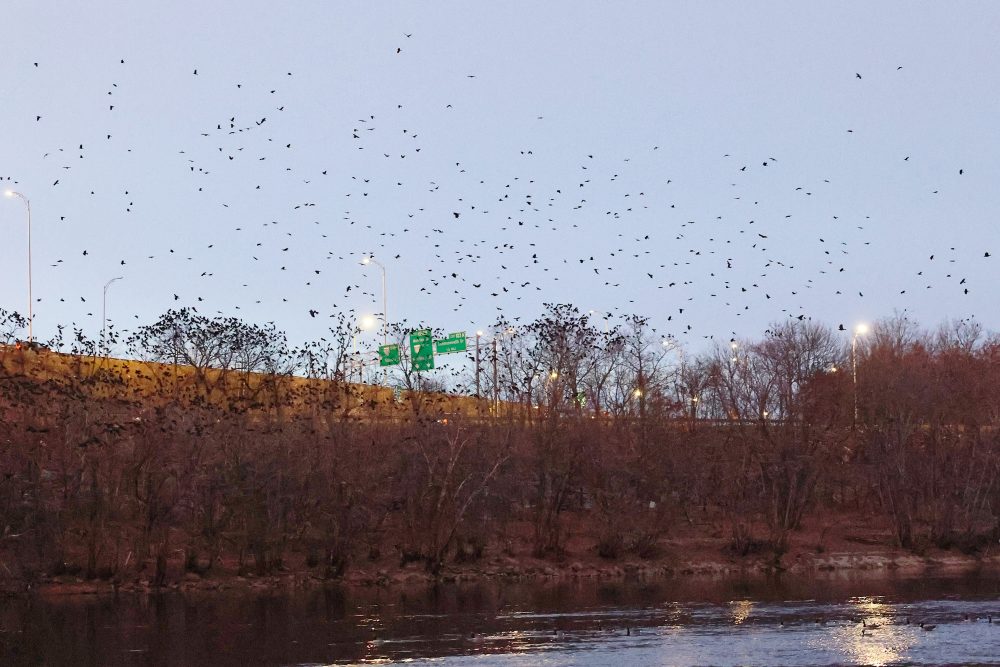 Incoming flight streams continued in what felt like an almost endless series of waves. From the southeast, both thick and thin lines of crows advanced steadily over the Merrimack River, threading their way toward the roost trees. Watching these successive waves arrive was a powerful reminder of the scale and coordination involved in a winter crow roost.