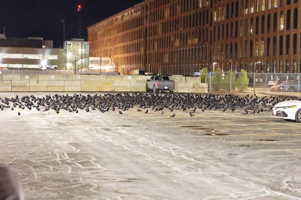 Just before departure, hundreds of Crows were seen mulling around again on the asphalt at the rear of the New Balance parking lot. In some locations, this is a common event with Crows perched in trees, on utility wires, and on rooftops or on the ground. Another spectacular Crow show!