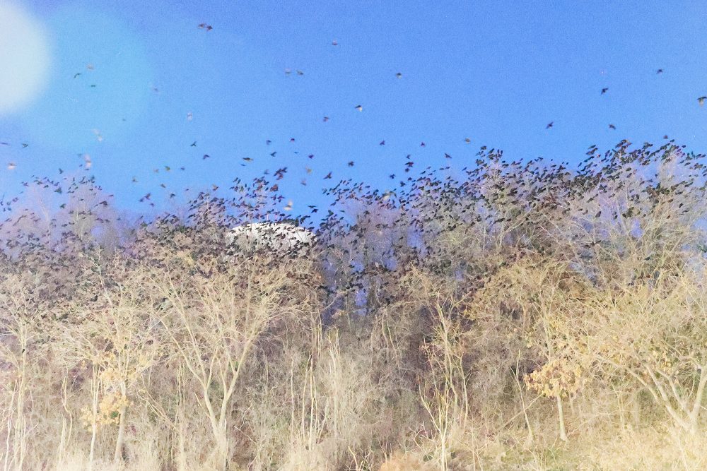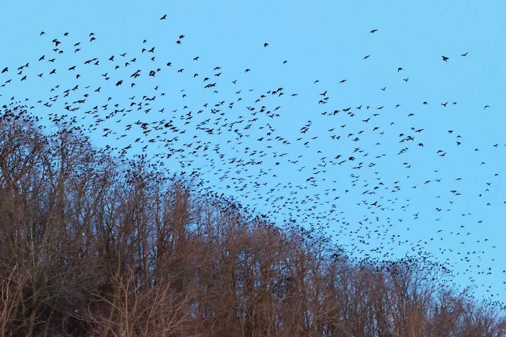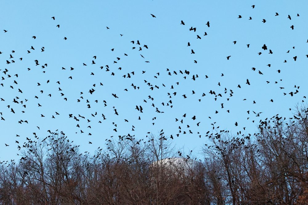 Note on counts/estimates: we are now using improved methods for counting the large number of Crows while streaming, staging, and in the roost. For all images, we use both a modified open source counting software program, as well as a hand count approach, while outside next to the roost, to carefully document our observations and to significantly increase reliability and accuracy of the presented numbers. Please refer to our new roost counting guide on main page.
