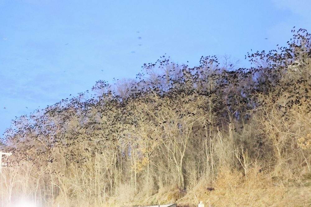 Note on counts/estimates: we are now using improved methods for counting the large number of Crows while streaming, staging, and in the roost. For all images, we use both a modified open source counting software program, as well as a hand count approach, while outside next to the roost, to carefully document our observations and to significantly increase reliability and accuracy of the presented numbers. Please refer to our new roost counting guide on main page.