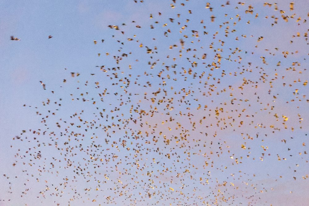 On most nights, the roost settles in and the vocalizations begin to subside at 40-45 minutes post sunset time. At times it looks like the roost is settled for the night and few additional flight movements are expected at all. This image at 40 minutes post sunset time.