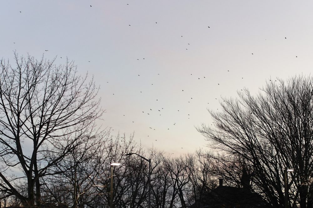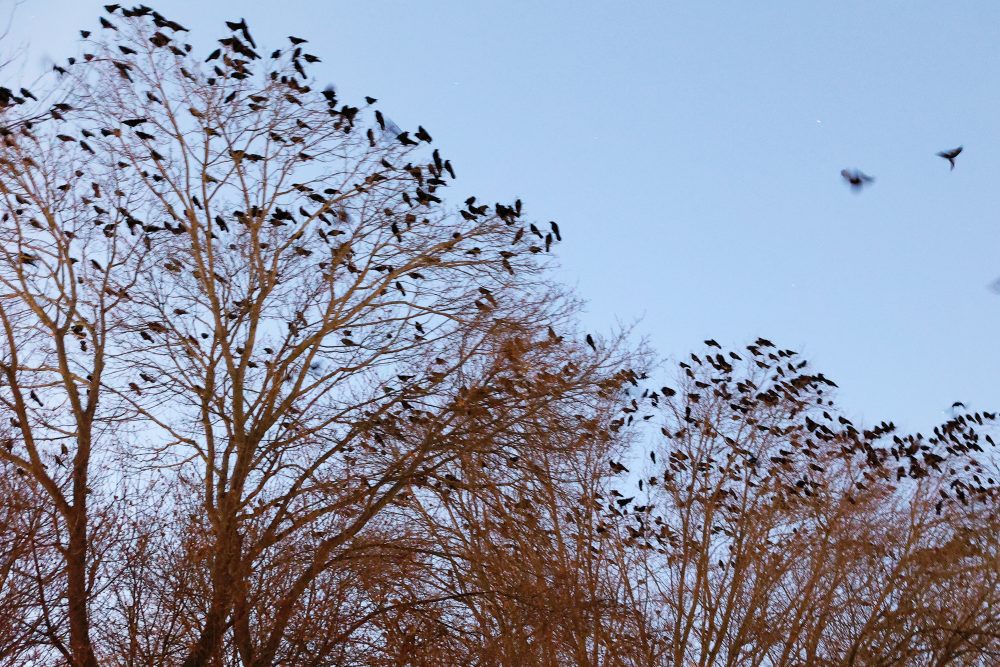 As activity intensified, we walked along Dionne Drive, where the evening truly came alive. Multiple flight bursts swept overhead and into nearby treetops, accompanied by loud, animated vocalizations that echoed through the area. Crows arrived, lifted off, circled, and resettled—sometimes repeatedly—as social interactions played out above us. The air was full of sound and motion, and the scene offered a vivid reminder that roosting is not a quiet or passive process, but a dynamic social event. David and Mark’s excitement was palpable, and their shared comments captured the scale and energy of these movements beautifully.