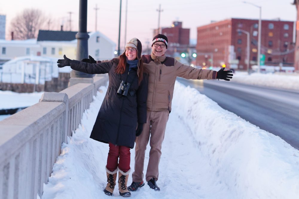 Jan. 31, 2026 under clear skies, northwest wind at 5 mph, 19°F; sunset at 4:56 PM. An evening of classic winter crow winter roosting behavior unfolded along the Merrimack River corridor, with multiple staging areas active and a dramatic build up toward an established overnight roost. It was a pleasure to welcome two groups of guests, with Abby and Eric below!
