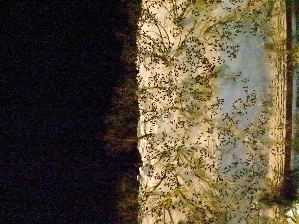 Last stop was back along South Canal Street with Crows on utility lines, roof tops, on the ground inside the National Grid substation, and lining the trees along the river. This aerial image with a direct overhead view provides a fascinating vantage point on spacing within the roost. This image at 105 minutes after sunset time. Another amazing night out flight action and lots of vocalizing!