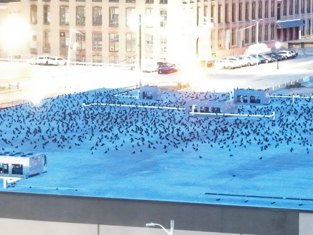 Out on Crow Patrol with initial stops along Merrimack Street and South Canal Street with smaller groups arriving mostly from the west. Initial buildup of staging Crows on the extended rooftop of former Lawrence Pumps building around sunset time.