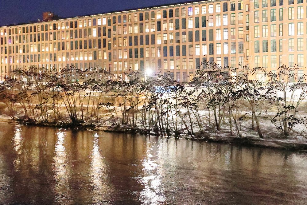 Amid lots of vocalizing, the Crows packed into the north side trees and nearby rooftops. At 35 minutes post sunset time large swarms moved upriver and then swooping low to the water and in an almost stealth mode, across towards the roost trees on the east side of the Duck Bridge. Image below at 37 minutes post sunset time.