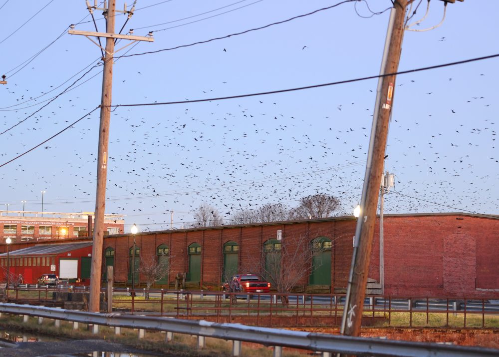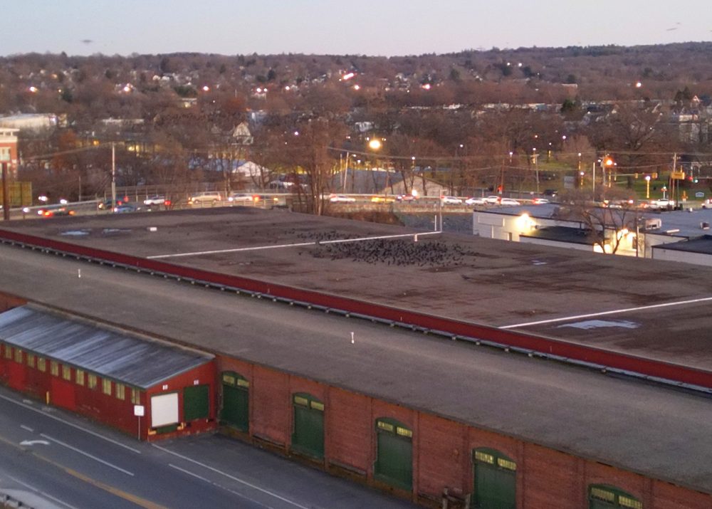 On Crow Patrol with first stops by airport, then baseball field at Incinerator Road while observing light incoming flight streams. While heading west on Merrimack St. observed staging Crows along Market St. around O’Connell South Common. At Market St. observed small numbers building up on the ground and in trees at sunset time.