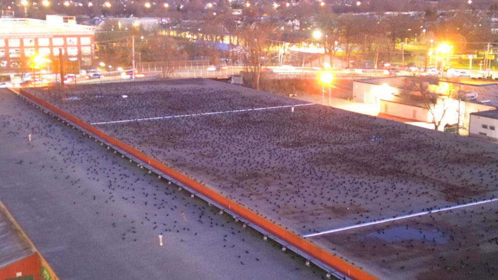 Note on counts/estimates: we are now using improved methods for counting the large number of Crows while streaming, staging, and in the roost. For all images, we use both a modified open source counting software program, as well as a hand count approach, while outside next to the roost, to carefully document our observations and to significantly increase reliability and accuracy of the presented numbers. Please refer to our new roost counting guide on main page.