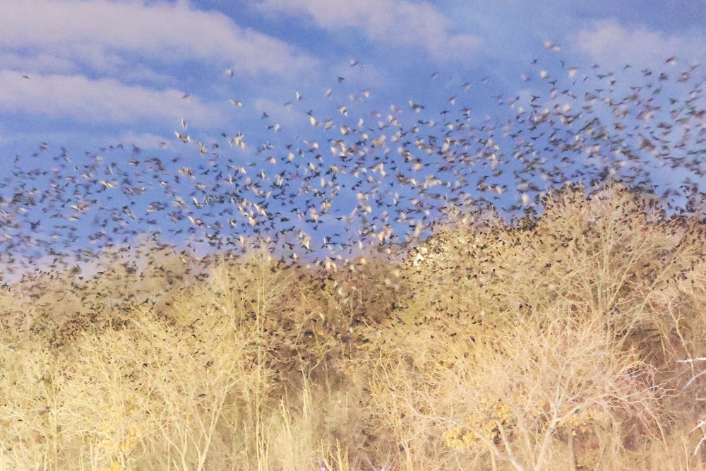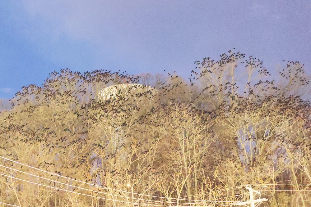 Note on counts/estimates: we are now using improved methods for counting the large number of Crows while streaming, staging, and in the roost. For all images, we use both a modified open source counting software program, as well as a hand count approach, while outside next to the roost, to carefully document our observations and to significantly increase reliability and accuracy of the presented numbers. Please refer to our new roost counting guide on main page.